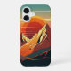 A nostalgic retro-style artwork featuring glowing mountains under a warm sunset, designed with bold vintage colors and a soft grainy aesthetic that captures the charm of timeless landscapes.