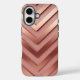 Este es un funda de Luxe Rosa Gold Purpurina iPhone 16. El diseño tiene un oro rosa rosa rosa rosa de lujo y rayas purpurinas falsas sobre un fondo purpurina rosa dorado rosado. El funda mostrado es un funda duro. Puede personalizar el teléfono con el botón Personalizar.