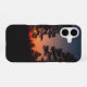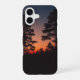 Una sorprendente escena del bosque retro con siluetas nítidas bajo un cielo de gradiente suave.
