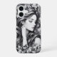 Elevate your phone case with this beautiful monochrome design, featuring a serene woman with closed eyes and flowing hair, gently resting among delicate florals. The soft contrasts of black, white, and grey create a timeless, artistic aesthetic that feels both peaceful and sophisticated.