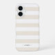 Diseño de estuches para teléfonos personalizados, limpios y modernos, con amplias rayas horizontales en tonos blanco y beige neutro pastel. Personalice con un nombre, un monograma o un dicho cerca del fondo con letras modernas y nítidas.