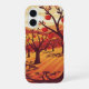 Retro illustration of a bright orchard highlighting stylized apples in a warm palette.