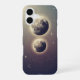 Retro illustration depicting two stylized moons in a soft cosmic palette.