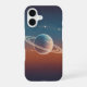 Retro illustration of a planet surrounded by rings, in a soft cosmic palette reminiscent of old posters.