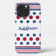 Este estuche de teléfono tiene un divertido diseño patriótico con rayas y puntos rojos, blancos y azules. Protege tu teléfono y muestra tu patriotismo al mismo tiempo con esta cubierta simplista pero divertida. Esto haría un gran regalo personalizado para usted, un amigo o familia al personalizar el nombre en la portada.