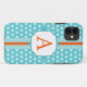Este funda monogramado está decorado con puntos de polka blancos y turquesa divertidos. Personalizar a este funda cambiando la letra del monograma para adaptarla a sus necesidades. El diseño es de arte original.