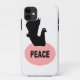 Este increíble estuche para iPhone 4 presenta una silueta negra de una lujosa paloma con un ojo blanco, sentada en un nido de forma ovalada rosa con la palabra paz escrita en negro en el centro del nido. El fondo es blanco, pero puede cambiarse a cualquier color que desee haciendo clic en el botón "personalizar".