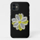 Este increíble estuche para iPhone 4 presenta una imagen digital de una flor de margarita con pétalos de color blanco y amarillo con un centro amarillo. Los pétalos parecen brillar con una hermosa calidad reflexiva. La flor está sobre un fondo negro para un contraste máximo y el resultado es impresionante.