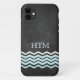 Chevrons blancos y turquesas en un fondo de pizarra decoran este funda para iPhone 5. El monograma puede cambiarse fácilmente a un nombre completo o eliminarse si se prefiere.