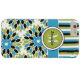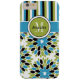 Este funda Funda-Mate personalizado iPhone 6 Plus, de color negro, blanco, azul turquesa y verde oliva, tiene un divertido patrón de fondo floral y rayado de starburst con una banda azul, verde y blanco acuático y círculo para añadir tu nombre, iniciales, monograma u otro texto. ¡Este nuevo funda moderno y de moda hace una declaración de moda para el joven y moderno modistonista! Si necesita ayuda, envíe un correo electrónico a niteowlstudio@gmail.com.