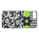 Este funda Funda-personalizado para iPhone 7, blanco y negro personalizado, tiene un amortiguador floral y un patrón de fondo rayado con una banda y flor de color verde lima y blanco con círculo para añadir tu texto inicial, monograma u otro texto. ¡Este nuevo funda moderno y de moda hace una declaración de moda para el joven y moderno modistonista! Si necesita ayuda, envíe un correo electrónico a niteowlstudio@gmail.com.