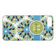 Este funda Funda-Mate personalizado iPhone 7 de color negro, blanco, azul turquesa y verde oliva, tiene un divertido patrón de fondo floral de starburst con una banda azul, verde y blanco acuático y círculo para añadir tu nombre, iniciales, monograma u otro texto. ¡Este nuevo funda moderno y de moda hace una declaración de moda para el joven y moderno modistonista! Si necesita ayuda, envíe un correo electrónico a niteowlstudio@gmail.com.