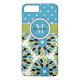 Este funda Funda-Mate personalizado iPhone 7 de color negro, blanco, azul turquesa y verde oliva, tiene un divertido patrón de fondo de punto de estrella floral y polka con una banda azul, verde y blanco acuático y círculo para añadir tu nombre, iniciales, monograma u otro texto. ¡Este nuevo funda moderno y de moda hace una declaración de moda para el joven y moderno modistonista! Si necesita ayuda, envíe un correo electrónico a niteowlstudio@gmail.com.