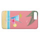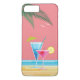 Un ilustracion de cócteles tropicales en rosa brillante y azul sobre un fondo de playa con un cielo de coral y acentuado con hojas de palma y gaviotas, decora este Funda de iPhone 7 Plus, recordándonos las cálidas vacaciones soleadas y los meses de verano.