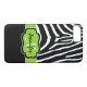Este funda Funda-personalizado iPhone 7 personalizado en blanco y negro tiene un divertido patrón de fondo rayado de cebra con una banda verde lima y negra para añadir tu nombre, iniciales, monograma u otro texto. ¡Este nuevo funda moderno y de moda hace una declaración de moda para el joven y moderno modistonista! Si necesita ayuda, envíe un correo electrónico a niteowlstudio@gmail.com.