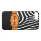 Este funda Funda-personalizado iPhone 7 personalizado en blanco y negro tiene un divertido patrón de fondo rayado de cebra con un naranja y una banda negra para añadir tu nombre, iniciales, monograma u otro texto. ¡Este nuevo funda moderno y de moda hace una declaración de moda para el joven y moderno modistonista! Si necesita ayuda, envíe un correo electrónico a niteowlstudio@gmail.com.