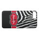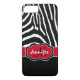 Este funda Funda-personalizado iPhone 7 Plus blanco y negro personalizado tiene un divertido patrón de fondo de rayas de cebra con una banda roja y negra para añadir tu nombre, iniciales, monograma u otro texto. ¡Este nuevo funda moderno y de moda hace una declaración de moda para el joven y moderno modistonista! Si necesita ayuda, envíe un correo electrónico a niteowlstudio@gmail.com.