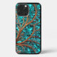 An abstract design with metallic teal colored leaves on copper colored branches covers this Apple iPhone 13 Pro Max Case.