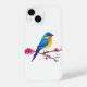 Funda Para iPhone Ave azul y amarilla con dibujos de flores rosadas