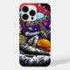 Arte vectorial original de un astronauta que tiene queso de luna y pasa una tajada a un alien. Creado en vector.