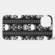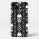 Este diseño gótico tiene un patrón ornamentado a rayas de adornos barrocos, calaveras y corazones en un esquema de color negro.