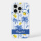 Funda Para iPhone Blue Toile Palm Trees Lemons Monogram Name