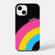 Hermoso regalo pansexual orgullo iPhone 14 funda con un fondo negro audaz para un amigo panromántico con los colores de la bandera de los tambores metálicos en forma de arco iris rosa, amarillo y azul. Una fresca portada de teléfono personalizado queer para la comunidad LGBTQ.