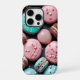 Estuche de teléfono personalizado Yummy rosa y verde azulado macaron cookies.