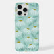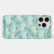 Funda Para iPhone Bottom Monogram Name Teal Blue Floral Pattern