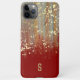 Pinceles y puntos de confeti con monograma dorado sobre fondo rojo ladrillo o cualquier color que elija. Este diseño artístico es sencillo y elegante. Solo agrega tu propia carta inicial. Hace un gran regalo para Navidades, vacaciones o cumpleaños. Pinturas a rayas elegantes y únicas con un diseño de confeti de Relieve metalizado dorado falso. Personalízalo con tu monograma.