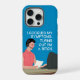 Busqué en Google mis síntomas, divertido estuche para iPhone de Bluntcard. Una mujer de color azul acuático y estilo vintage sentada en un ordenador de aspecto retro con auriculares.
