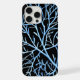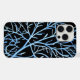 Una fascinante obra de arte abstracta con una red de intrincadas ramas azules sobre un fondo negro profundo.