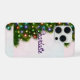 A phone case featuring a Christmas tree design on the left side, adorned with colorful lights. The background is a gradient of light pink and white with subtle bokeh effects resembling snowflakes. The name "Charlotte" is written in a cursive font across the center of the case.