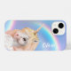 Perfecto para ella, este estuche de teléfono presenta un retrato de un unicornio blanco contra un cielo doble arco iris. Las nubes blancas flotantes flotan en el fondo. Su nombre es blanco en la parte superior derecha. Único!