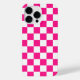 Cuadros de cuadros de cuadros de patrón retro geométrico rosa caliente y blanco para iPhone Case. Accesorios electrónicos para ella. Patrón cuadrado geométrico retro de Guay. Baldosa de época blanca y damero moderno rosa caliente.