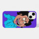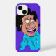 Esta obra de arte en la portada del iPhone presenta una caricatura animada y caricaturista de un hombre con rasgos faciales exagerados, incluyendo ojos abultados, una sonrisa ancha y una nariz prominente. El personaje está representado con humor en una camisa turquesa brillante, colocada sobre un fondo violeta y audaz. El estilo es lúdico y exagerado, con gruesos contornos negros y colores vivos, lo que le da un ambiente animado y enérgico a la pieza. El diseño general es caprichoso, lo que lo convierte en un accesorio atractivo y divertido.