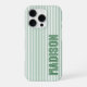 Funda Para iPhone Cute Green & White Pinstripe Personalized Name