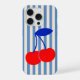 A playful and retro-inspired phone case featuring bright red cherries on a soft blue and cream striped background. This cheerful design brings summer vibes and vintage charm, making it perfect for anyone who loves cute, colorful, and aesthetic accessories. Ideal for everyday use, gifts, and adding a fun pop of color to your phone.