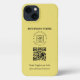 Promociona tu marca con elegancia utilizando esta funda personalizada para iPhone que cuenta con un logotipo empresarial con gradiente dorado y código QR. Agrega el nombre de tu empresa, sitio web o eslogan para crear un accesorio promocional elegante. Perfecto para branding corporativo, empleados, eventos de marketing y obsequios profesionales con un aspecto moderno y lujoso.