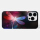 Flor, vuelo, libélula roja, con alas transparentes y detalladas sobre fondo oscuro, nocturno y luminoso con plantas tropicales y luciérnagas. Lluvia roja.
