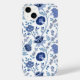 Funda Para iPhone El azul del gran patrón de flores jacobeas en blan