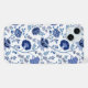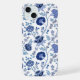 Funda Para iPhone El azul del gran patrón de flores jacobeas en blan