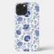 Funda Para iPhone El azul del gran patrón de flores jacobeas en blan