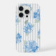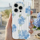 Funda Para iPhone Elegant Blue Hydrangea Pattern Gray Stripe
