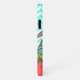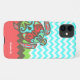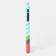 Elegante estuche para iPhone de diseño con motivos modernos de zigzag aguamarina y chevron blanco, con franjas de zigzag verdes, marrones y de color coral en la parte inferior. La parte izquierda está decorada con gráficos de una tortuga marina de inspiración azteca, de color marrón, aguamarina, verde y naranja de coral. Personalice el texto en blanco para que se ajuste a sus necesidades. Excelente manera de personalizar tu teléfono con un aspecto divertido que todos te preguntarán. Elige el estilo de iPhone en el que quieres este diseño.