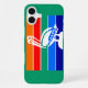 funda iPhone 16 Plus con un diseño con la bandera de San Petersburgo, Florida. Bandera de rayas naranja, rojas, verdes, azules y azul marino con un símbolo de pelícano blanco