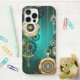 Joyería, reloj de oro con una cadena de oro y llaves sobre un fondo textural verde. Estilo Steampunk.