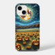 AI generó arte de una espeluznante escena de Halloween con una luna gigante resplandeciente sobre un parche de calabaza y una casa de campo.