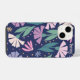 Funda Para iPhone Estuche para iPhone de flores rosadas de moda azul