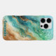 Este funda de personalizable presenta un diseño de mármol verde azulado, acuático y dorado. Añade tu nombre para un toque personal que combina belleza y función en un accesorio elegante.